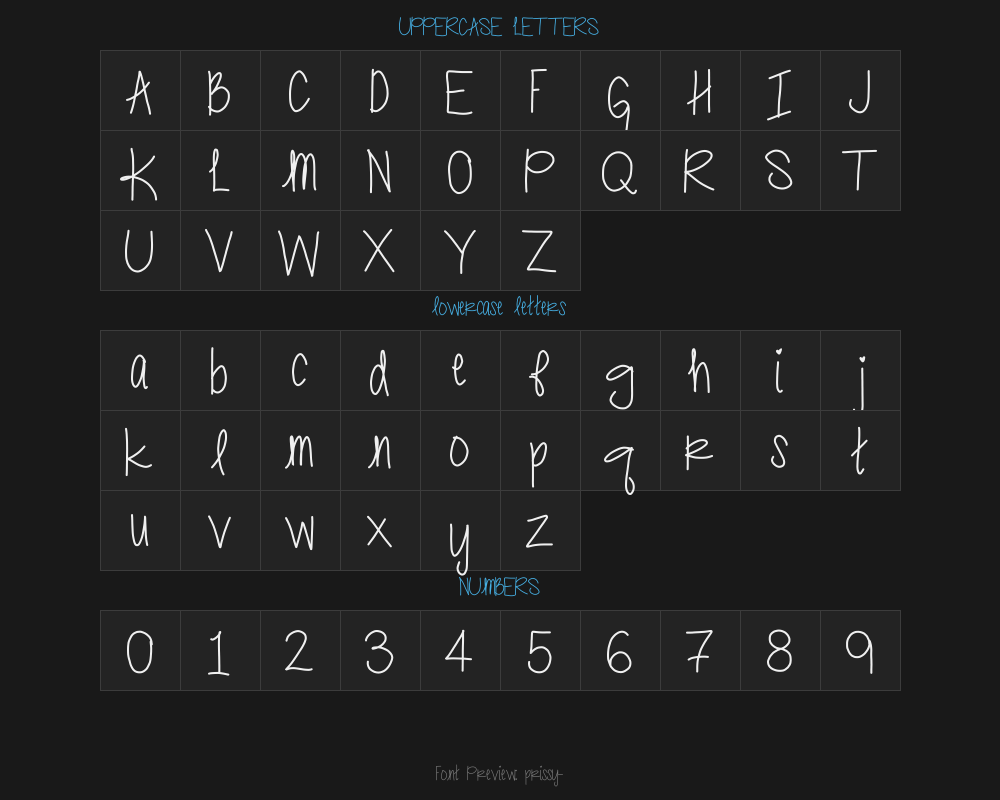 prissy- is a font file with a size of 0.05 MB. The full font name is prissy, Version 1.0 version. It contains 117 characters, supports 8 Chinese characters. The copyright belongs to prissy. prissy- font is available for free download, but commercial use requires confirmation on the prissy official website whether it's free for commercial use.